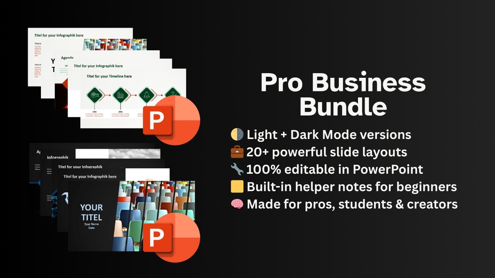 Includes 20+ professional slides in both Light and Dark Mode – ready to edit & present: